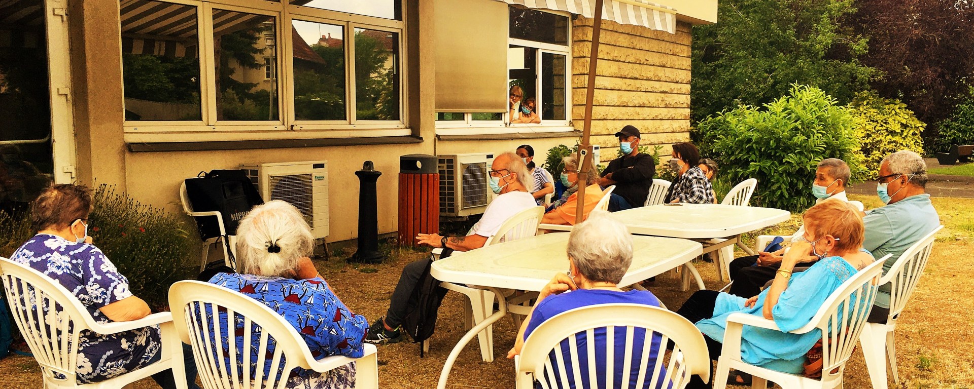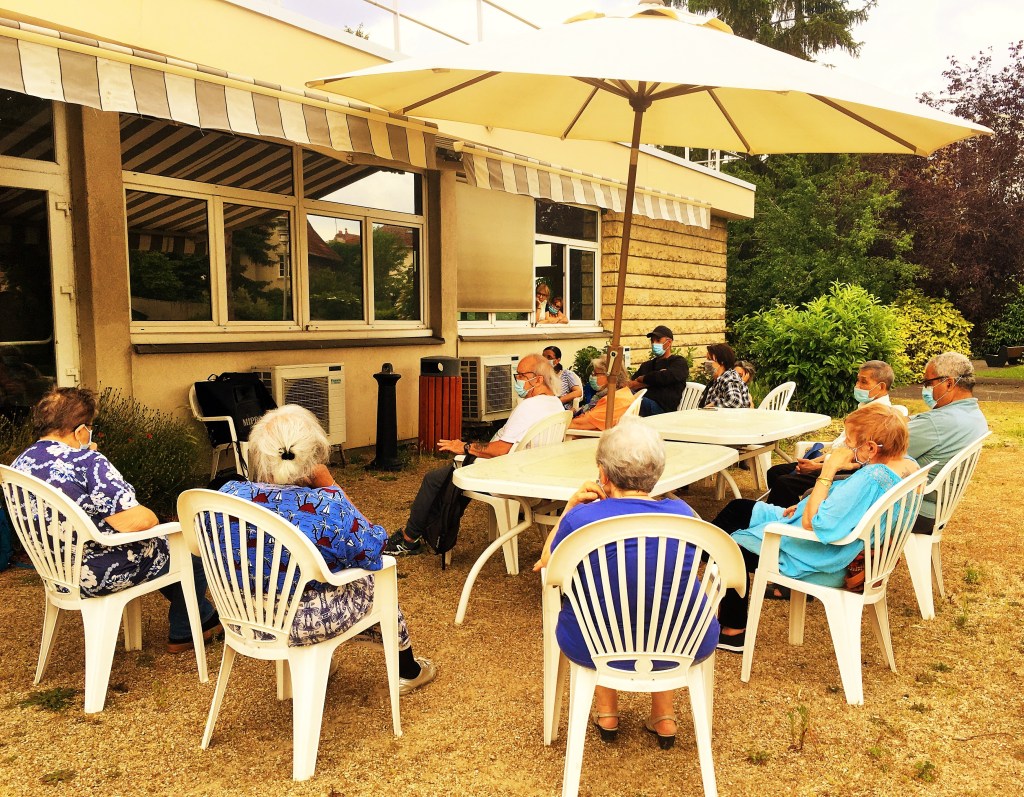 C’est un rendez-vous qu’elle prend avec eux, et chaque semaine se fait conteuse à leurs oreilles réceptives. Et quand se fût possible, avec maintes précautions, trois ateliers lectures théâtrale sont organisés par le service aux personnes retraitées de la ville, les directrices des trois résidences et le théâtre Jean-Vilar. Et voilà, que les voix sont captées, mêlées et restituées un après-midi de juin, au bord de la tempête qui ne vient pas.
