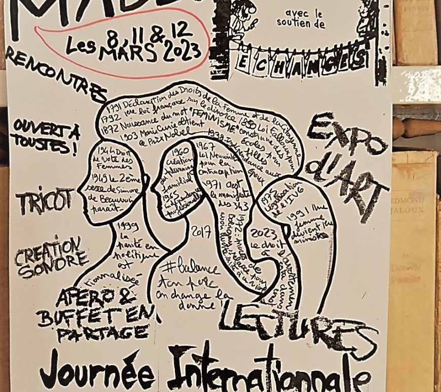 Nous avons reçu l’invitation de l’association Échanges, qui Chez Madeleine organise la Journée du 8 Mars 2023. Journée internationale des droits des femmes, chez Madeleine à Saint-Ouen-sur-Seine Temps de rencontres ouvert à toustes pour clôturer dans la convivialité la Journée internationale des droits des femmes,  On pourra revoir les œuvres des artistes familières du lieu, découvrir de nouvelles propositions artistiques, prendre un verre, partager des lectures, … Continuer de lire Chez Madeleine : Radiographie d’un immeuble en écoute