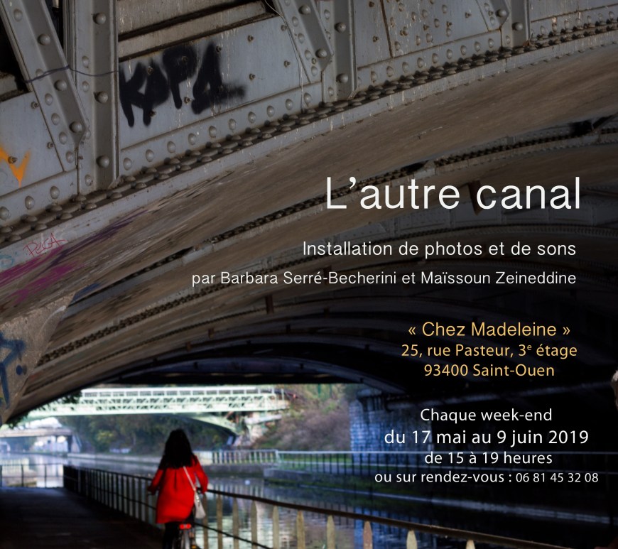 Installation photos et sons par Barbara Serré-Becherini et Maïssoun Zeineddine. Chez Madeleine, 25 rue Pasteur à Saint-Ouen ( 93). Métro Porte de St-Ouen. Du 17 mai au 09 juin 2019. Attirées par l’herbe entre les pavés, l’horizon dégagé et l’imaginaire suscité par les terrains vagues, nous avons pris nos habitudes de balade le long du canal de l’Ourcq. Nous y avons croisé d’autres habitués et … Continuer de lire L’autre canal